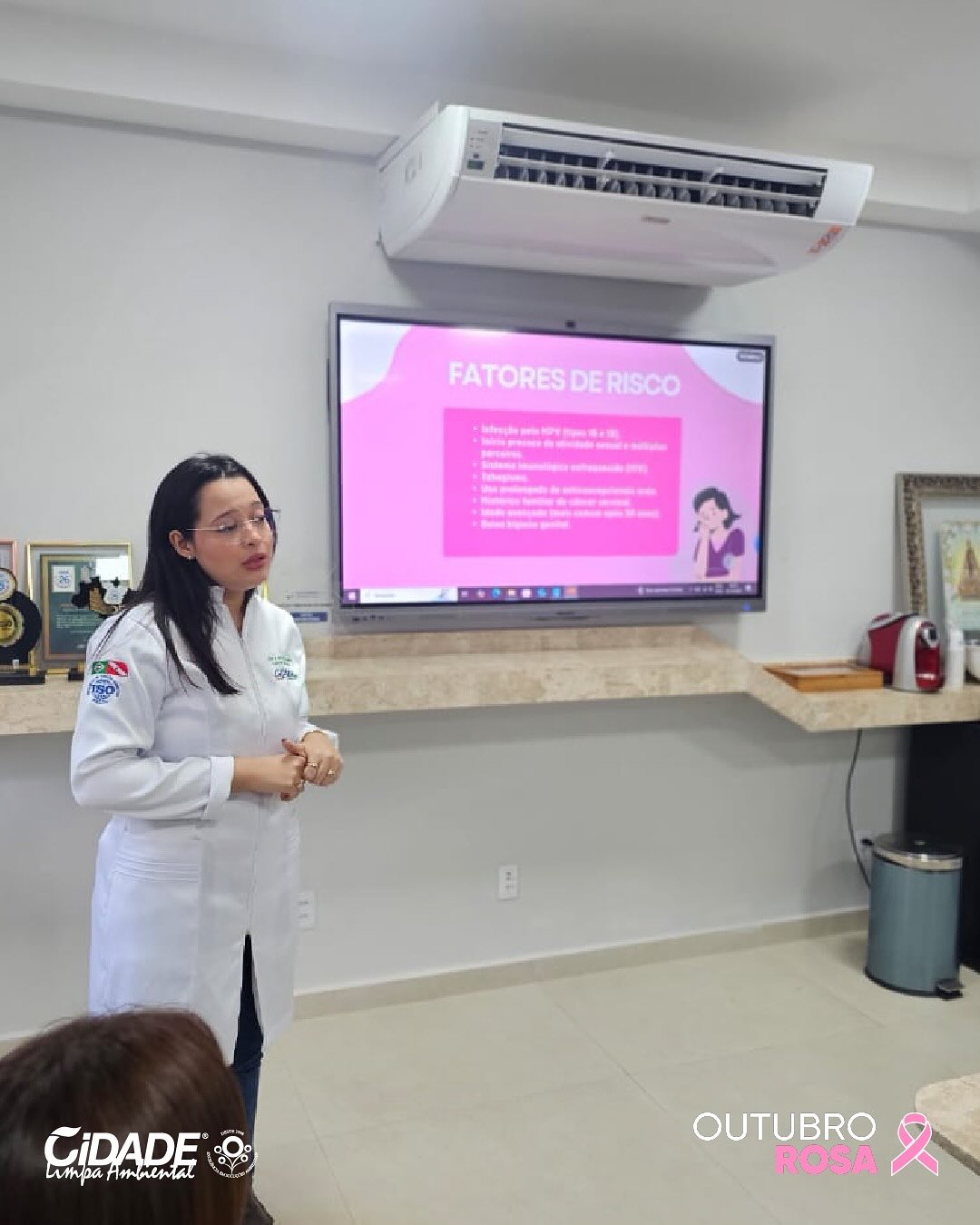 Durante a palestra ministrada pela Técnica de Enfermagem Gabriely Rebeka Alves Mira, foram abordados temas sobre a prevenção do câncer de mama e do colo do útero, destacando como o autocuidado, o diagnóstico precoce e a informação são fundamentais para salvar vidas.